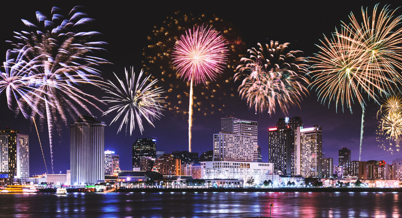 New Orleans brings New Year’s Eve to life with a mix of jazz, street performances, and lively crowds filling Jackson Square. Music echoes through the French Quarter, riverboats cruise the Mississippi, and the midnight fleur-de-lis drops pairs perfectly with fireworks that brighten the historic skyline for an unforgettable celebration.