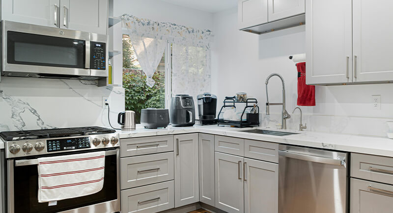 In the 90s and early 2000s, microwaves tucked above the stove were a space-saving revelation. Today, though, they’re seen as impractical and dated. Not only do they make accessing a hot dish a bit dangerous, but they also take away from the sleek look of a hood vent or open backsplash design.