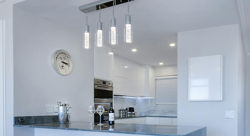 The buzzing glow of fluorescent lights was once a kitchen staple. But harsh, clinical lighting doesn’t do anyone any favors—not your food, your mood, or your eyes. Today’s kitchens favor warm, layered lighting with recessed fixtures, under-cabinet LEDs, and stylish pendant lights
