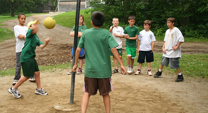 Kickball followed baseball rules but used a rolling ball and a kick rather than a bat. One player pitched by rolling the ball, and the kicker sent it across the field. Runners moved between bases while fielders made plays. The game moved faster than baseball and welcomed anyone.