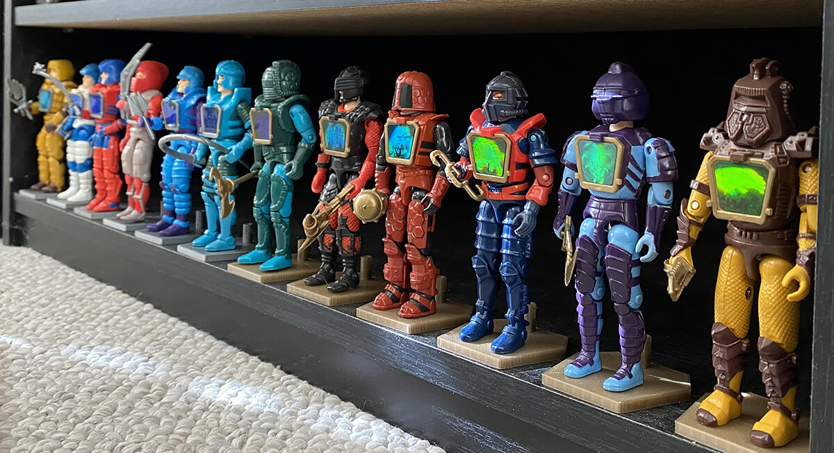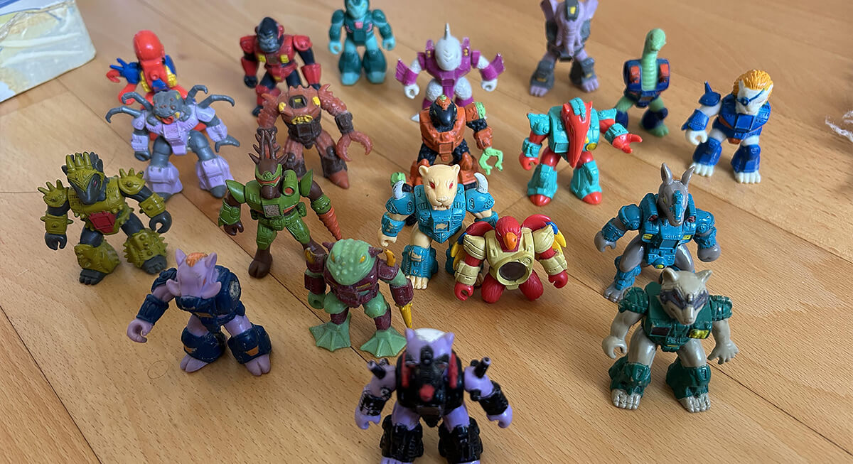 Each figure of the Battle Beasts represented a creature, such as a bear or lion, wearing armor and carrying tiny weapons. A small holographic square appeared on the chest of every toy and revealed the character’s elemental power. The design had kids tracking down as many different warriors as possible.