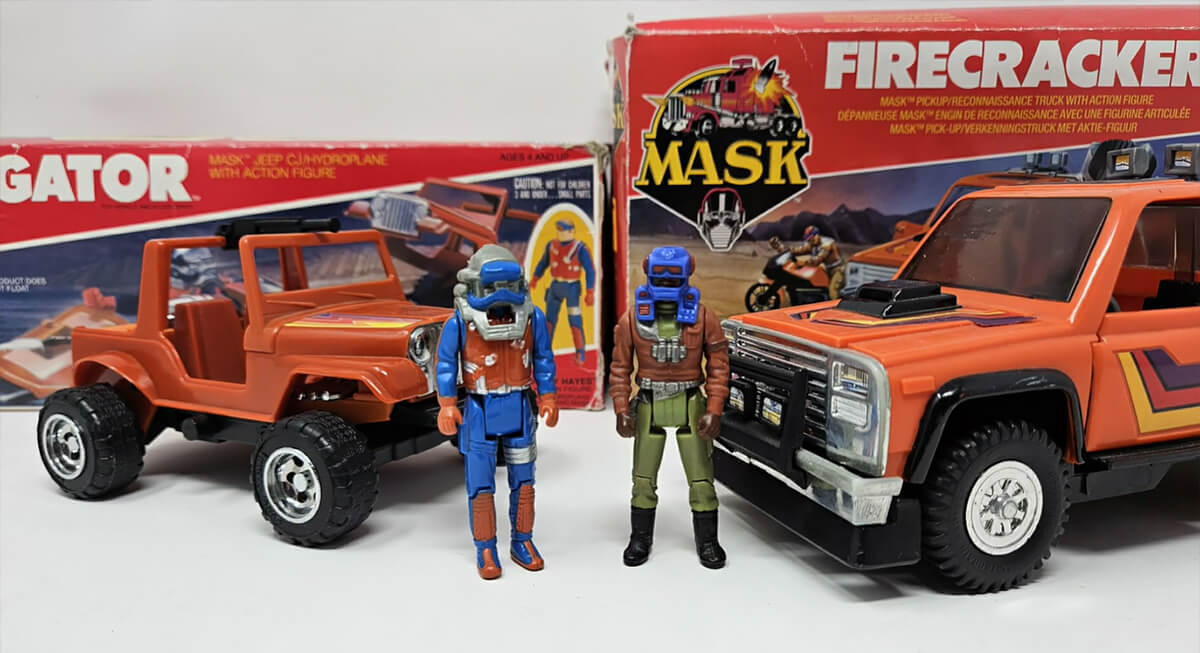 M.A.S.K.—short for Mobile Armored Strike Command—stood out in the mid-1980s for its transformation gimmick. At the push of a button, an ordinary-looking vehicle could reveal a hidden combat mode, like a sports car converting into a fighter jet. Each set included both the transforming vehicle and its driver figure. A supporting animated series helped build its popularity, though the figures were made in a different scale than G.I. Joe, which made them harder to mix with other toy collections.