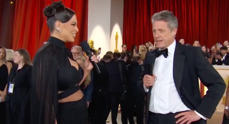 At the 2023 Oscars, Ashley Graham tried to keep the conversation friendly while interviewing Hugh Grant. He answered with clipped, indifferent replies that drained the energy from the exchange. When she mentioned his role in Glass Onion, he brushed it off, joking that he appeared for only “about three seconds,” leaving the moment visibly uncomfortable.