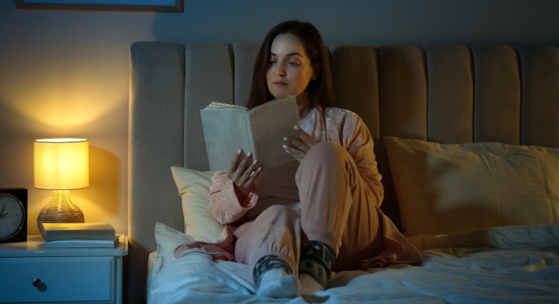 Ceiling lights or bedside lamps with bright bulbs can keep your brain active. Harsh lighting before bed makes it harder to wind down.