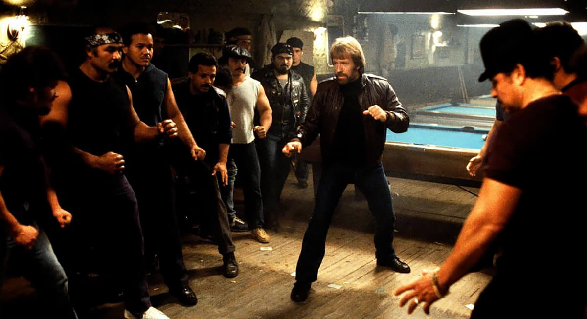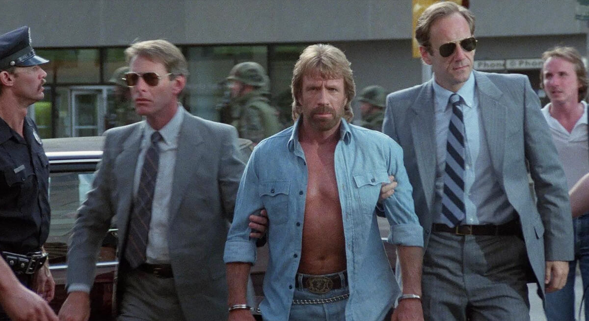 A Texas Ranger with a stubborn streak, J.J. McQuade helped define Norris as a leading man. The film has both Western grit and thriller drama, which gave him room to play a loner who operates outside the standard rules. His showdown with David Carradine adds tension, especially given their martial arts backgrounds. The iconic beard made its debut here, too.