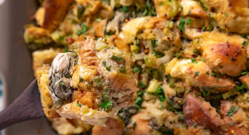 Classic oyster dressing required fresh oysters that had to be shucked or rinsed if purchased jarred. Bread cubes needed to dry before being mixed with celery, onion, herbs, and the oysters. Baking it required steady heat since overcooking made the oysters rubbery. Families in coastal areas kept this dish alive, even though the ingredients weren’t cheap.