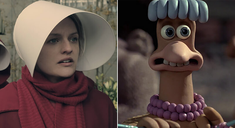 A wide-eyed Elisabeth Moss close-up carries the same “slightly startled but sweet” energy that made Babs so lovable. The open expression, rounded eyes, and soft smile create a match that fans latch onto quickly. The contrast between Moss’s intense roles and Babs’s cheerful personality only makes the resemblance more entertaining.