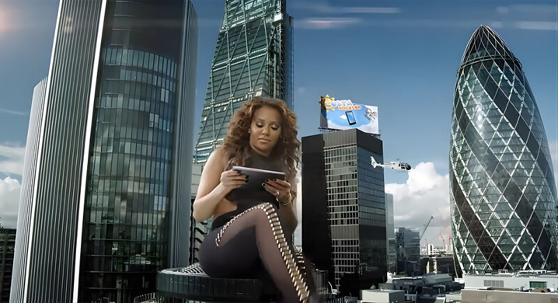 Scale became the entire concept because CGI placed Melanie B towering over London as she searched for jackpots. Unsurprisingly, the visual spectacle drowned out the message. The ad felt more like a technical experiment than a promotion, with attention locked on how it looked rather than what it was saying.