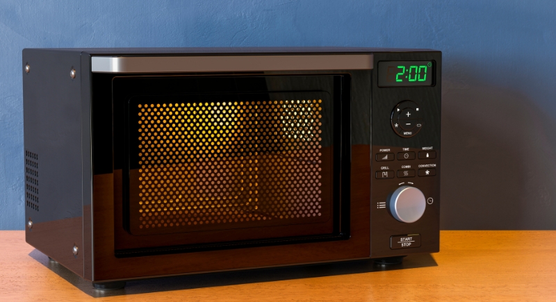 The black dotted screen inside your microwave door is a safety feature called a Faraday shield. It keeps microwave radiation from leaking out while still letting you watch your food spin. The holes are small enough to block the waves, but spaced so your eyes can still see through.