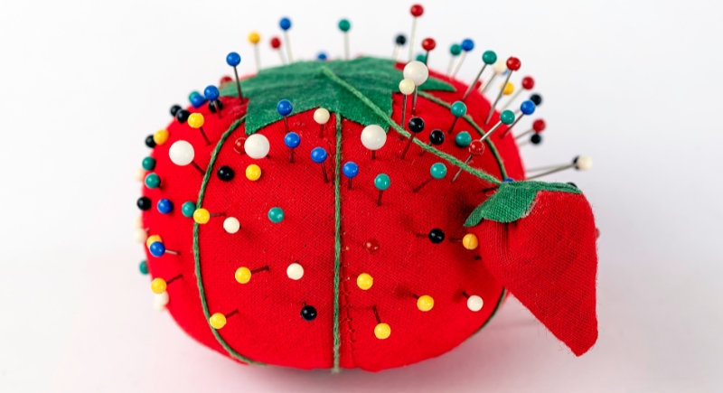 Most sewing kits include a red tomato with a smaller strawberry attached. That tiny strawberry is filled with emery powder. When you poke your needles into it, the powder helps clean and sharpen them. It’s a built-in tool to keep needles smooth and rust-free between uses.