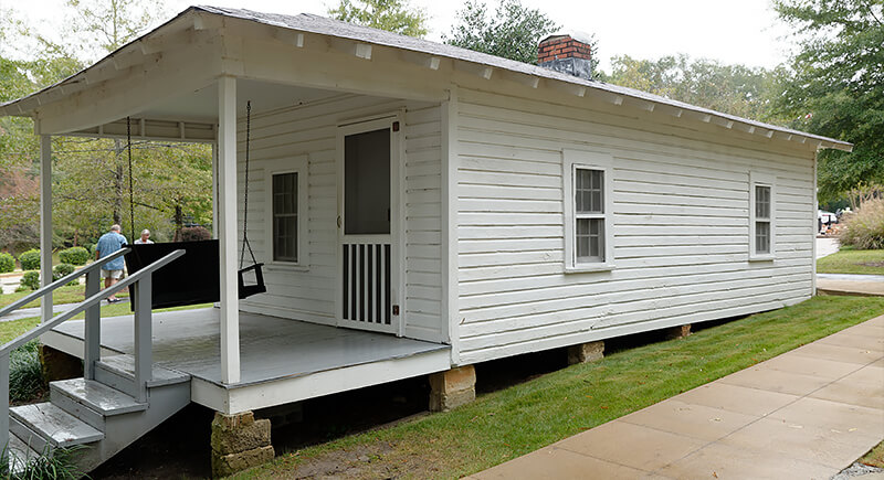 Born Eunice Waymon, Nina Simone spent her earliest years in a three-room clapboard house in Tryon, North Carolina. The 560-square-foot home housed her parents and seven siblings. A piano fit inside the tight quarters, and she began playing in church at age five. After falling into disrepair, the house was saved in 2017 by artists who raised funds to preserve it.