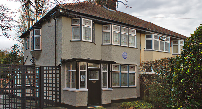 John Lennon moved into 251 Menlove Avenue in Liverpool as a child following his parents’ separation. Known as Mendips, the house belonged to his Aunt Mimi. Lennon and Paul McCartney rehearsed and wrote early songs there. The property now belongs to the National Trust, preserved much as it looked during the formative years of The Beatles.