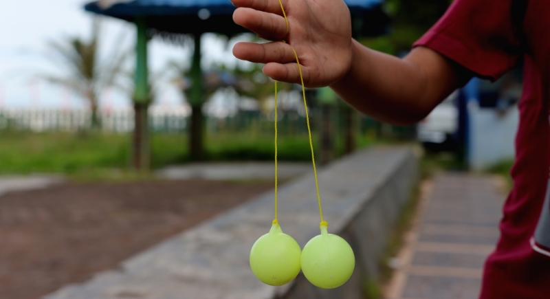 Clackers were a popular toy made of two hard acrylic balls attached to a string. Players snapped their wrists, causing the balls to swing up and down, striking each other above and below the hand. The fast collisions created a loud clicking sound that echoed across playgrounds. The problem was the material. The rigid plastic sometimes cracked under the repeated impacts. When that happened, the balls could shatter and send sharp fragments flying during play.