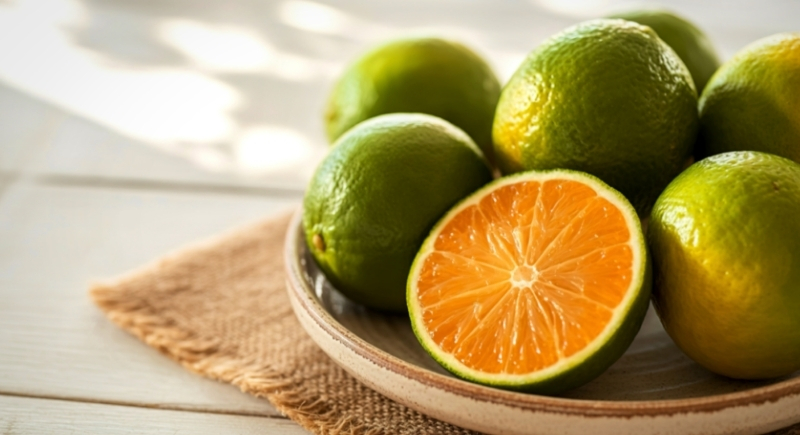 In equatorial citrus regions like parts of Brazil and Southeast Asia, fully ripe oranges can still look green when harvested. U.S.-bound shipments often pass through post-harvest degreening rooms where controlled ethylene exposure shifts peel color for retail expectations. The process only affects the outer appearance, since sugar levels and internal ripeness develop naturally on the tree.