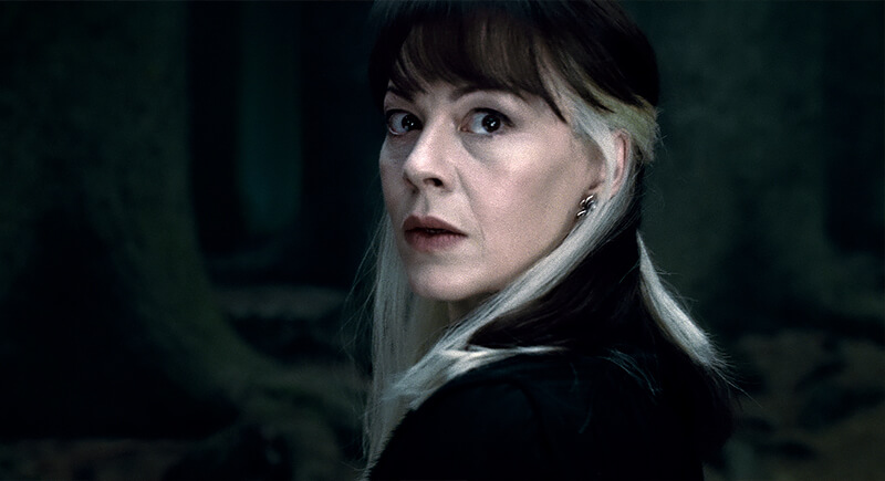 On the page, she was mostly ice and blonde hauteur, but Helen McCrory gave her sharper edges on screen. The two-toned hair—pale on one side, dark on the other—linked her to Bellatrix without a word. That choice, paired with McCrory’s controlled poise, carved out a presence that felt both aristocratic and threatening at once.