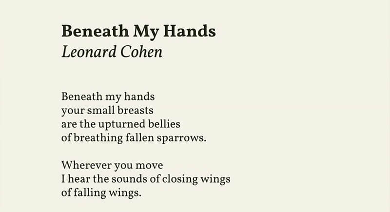 Leonard Cohen was a Canadian poet, novelist, and songwriter whose writing often explored love, longing, faith, and desire. Before becoming famous as a musician, he built his reputation through poetry collections that combined intimacy with emotional restraint. His poems rely on suggestion, vulnerability, and carefully chosen language. Here are a few pieces that draw readers in.