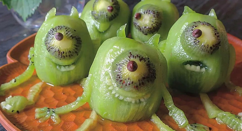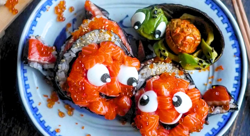 Although many of her designs include eggs, she works with a wide variety of ingredients. Kiwis became one-eyed monsters, and avocado slices helped form a well-known movie character. She also decorates cookies or shapes fruit to resemble cartoon mascots. The designs adhere to one rule: everything must remain edible and recognizable.