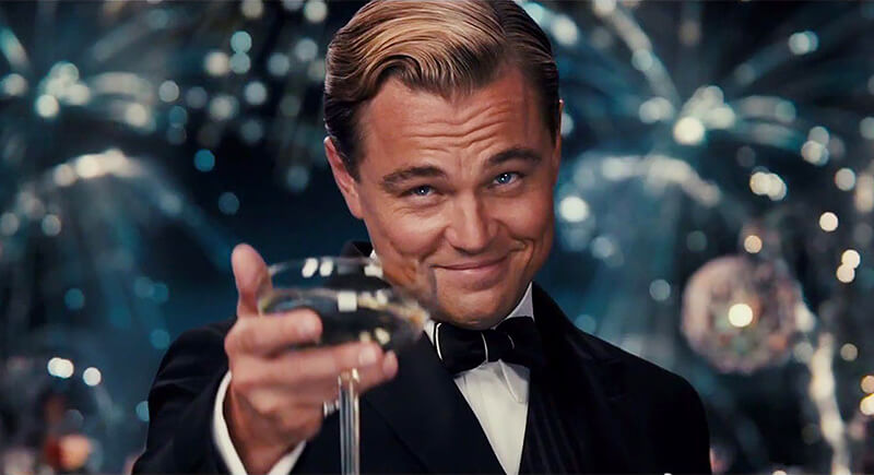 The GIF of Leonardo DiCaprio holding up a champagne glass has traveled farther than the movie itself. It’s used endlessly to toast everything from small wins to sarcastic digs. In Baz Luhrmann’s adaptation, this was Jay Gatsby’s big entrance, meant to be dramatic and larger-than-life.