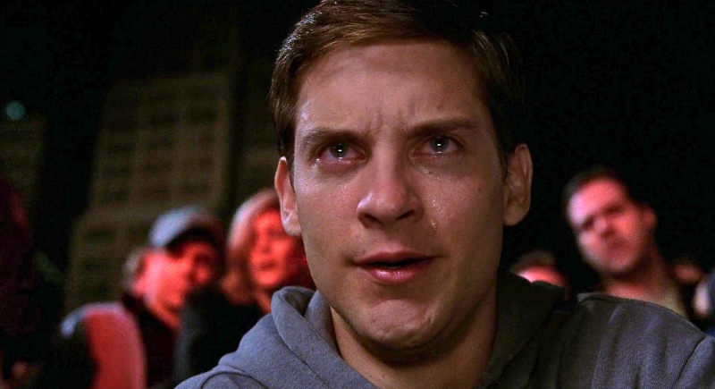 Tobey Maguire’s tear-streaked face from Sam Raimi’s Spider-Man became one of the internet’s favorite ways to exaggerate overreactions. Within the movie, Uncle Ben’s death was a turning point that shaped Peter Parker’s sense of responsibility.