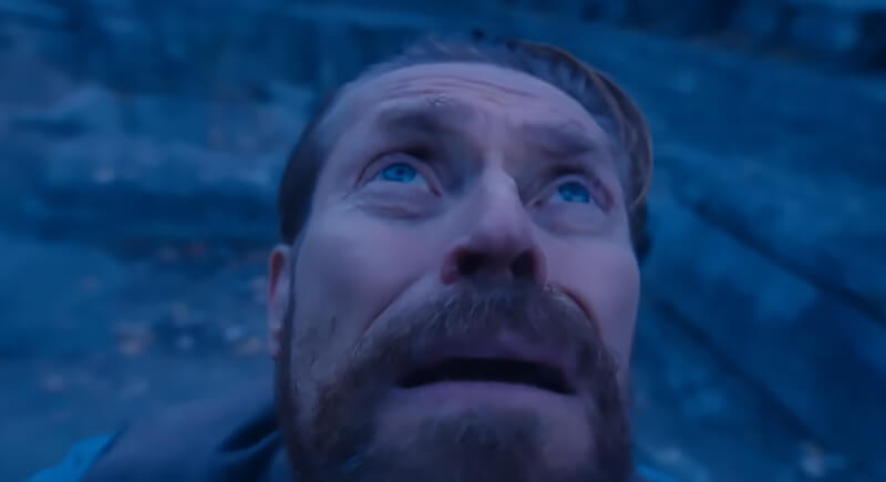 The shot of Willem Dafoe looking skyward in despair was turned into memes almost immediately. In the film, it represents Vincent van Gogh’s mounting loneliness and decline, triggered by Paul Gauguin leaving town. Outside that context, it became a visual gag.
