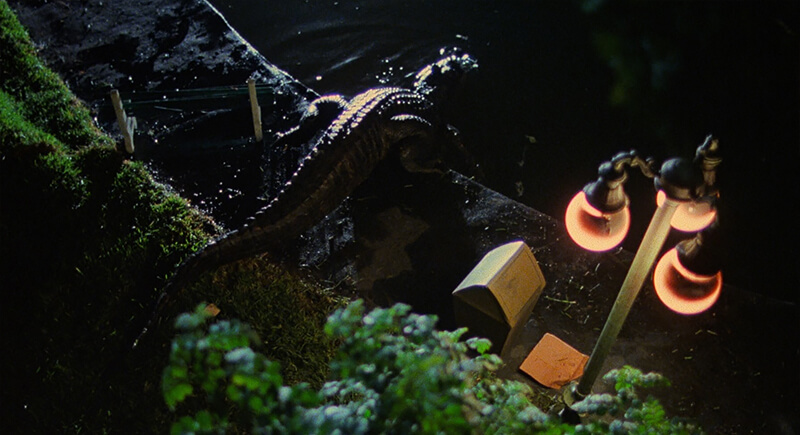 Actual alligators were used in scaled-down environments to make them look huge. Their movements were paired with animatronics and inserted into scenes through optical printing. The mix created a murky, grimy sewer predator that felt more tactile than the later, flashier digital monsters would have.