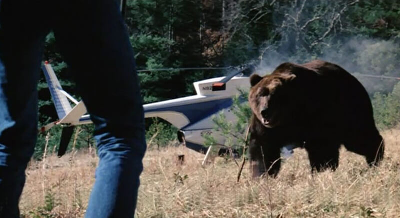 The movie sold audiences an 18-foot nightmare, but the real star was far less mythical. Teddy, a trained Kodiak bear, stood a little over 11 feet tall and was never placed near the actors. Instead, handlers guided him with food, while fake arms, legs, and tight editing created the illusion of close-up attacks. It looked convincing on screen, even though Teddy never actually went near anyone during those scenes.