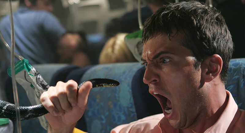 More than 450 snakes were brought to the set, from small constrictors to larger non-venomous breeds. Most were harmless, but a few venomous ones were kept on hand for specific shots. Actors had to react to real snakes writhing through the cabin. CGI filled in the gaps, but many reactions were very real.