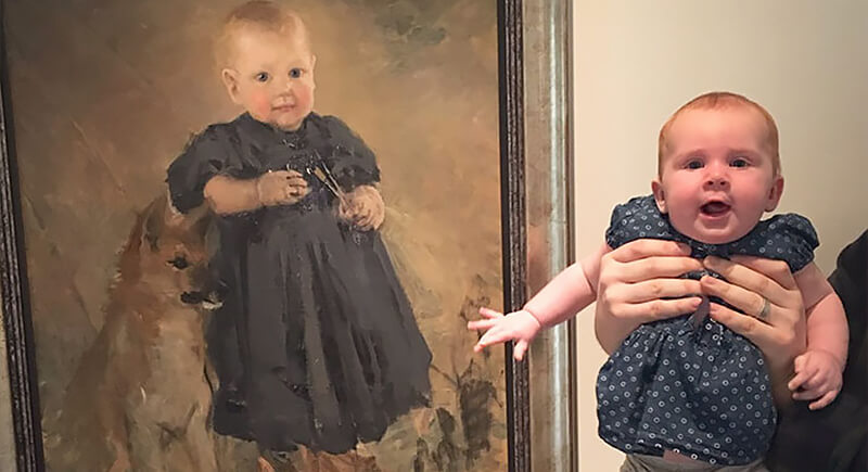 This baby’s museum visit turned into a perfect photo moment when her parents noticed a painting that looked exactly like her. The portrait, likely from the late 19th century, shows a toddler posing beside a loyal dog. It’s almost uncanny how well the likeness holds up through time. Now all this little one needs is a puppy to complete the masterpiece.