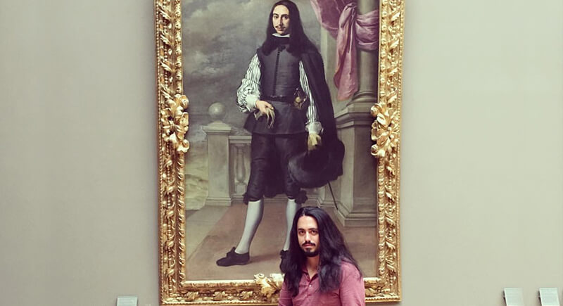 It’s not every day someone visits the Louvre and meets their 17th-century counterpart, but this man did just that. Standing beneath the portrait of Íñigo Melchor de Velasco, a Spanish nobleman and viceroy of Naples, he looks like he stepped right out of the frame. The matching long dark hair and composed stare are uncanny. It’s almost as if Velasco’s portrait was waiting centuries just to prove style never really fades.