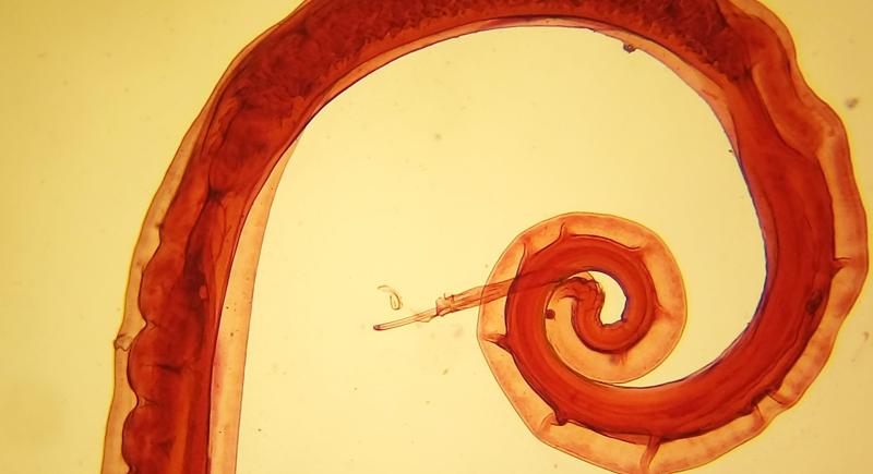 This hookworm thrives in warm, damp soil, where its larvae can cling to produce or come into contact with bare skin. After entering the body, it anchors itself to the intestinal wall with sharp cutting plates that irritate the tissue and cause discomfort. Because it feeds on blood continuously, infections can lead to anemia and nutrient loss. Communities without reliable sanitation face higher exposure, since eggs hatch in soil that’s regularly contaminated.