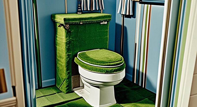 Why stop at houseplants when you can turn your toilet into a patch of turf? This bright green shag cover rode the 1970s trend of bringing the outdoors inside. It may not have been the most practical choice, but it sure made bathrooms feel like backyards.