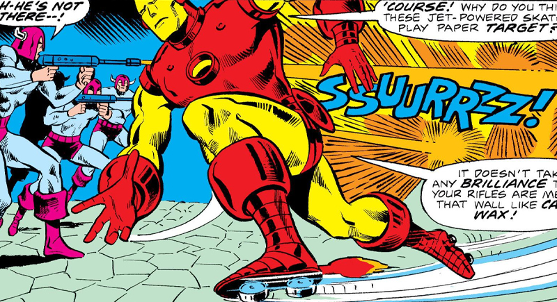 In the early comics, Stark’s armor had built-in roller skates. Tales of Suspense #45 gave readers a version of Iron Man zooming through streets like a clunky disco robot. The skates were meant to save energy or aid in ground mobility, but the idea transformed a high-tech icon into a roller derby participant.