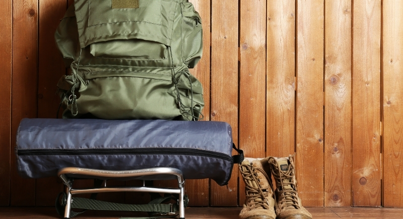 A neatly packed tent, complete with ropes and stakes, was found under a row of seats on a bus. The outdoor gear appeared unused. After the waiting period expired, it was donated to a charity supporting unhoused residents.
